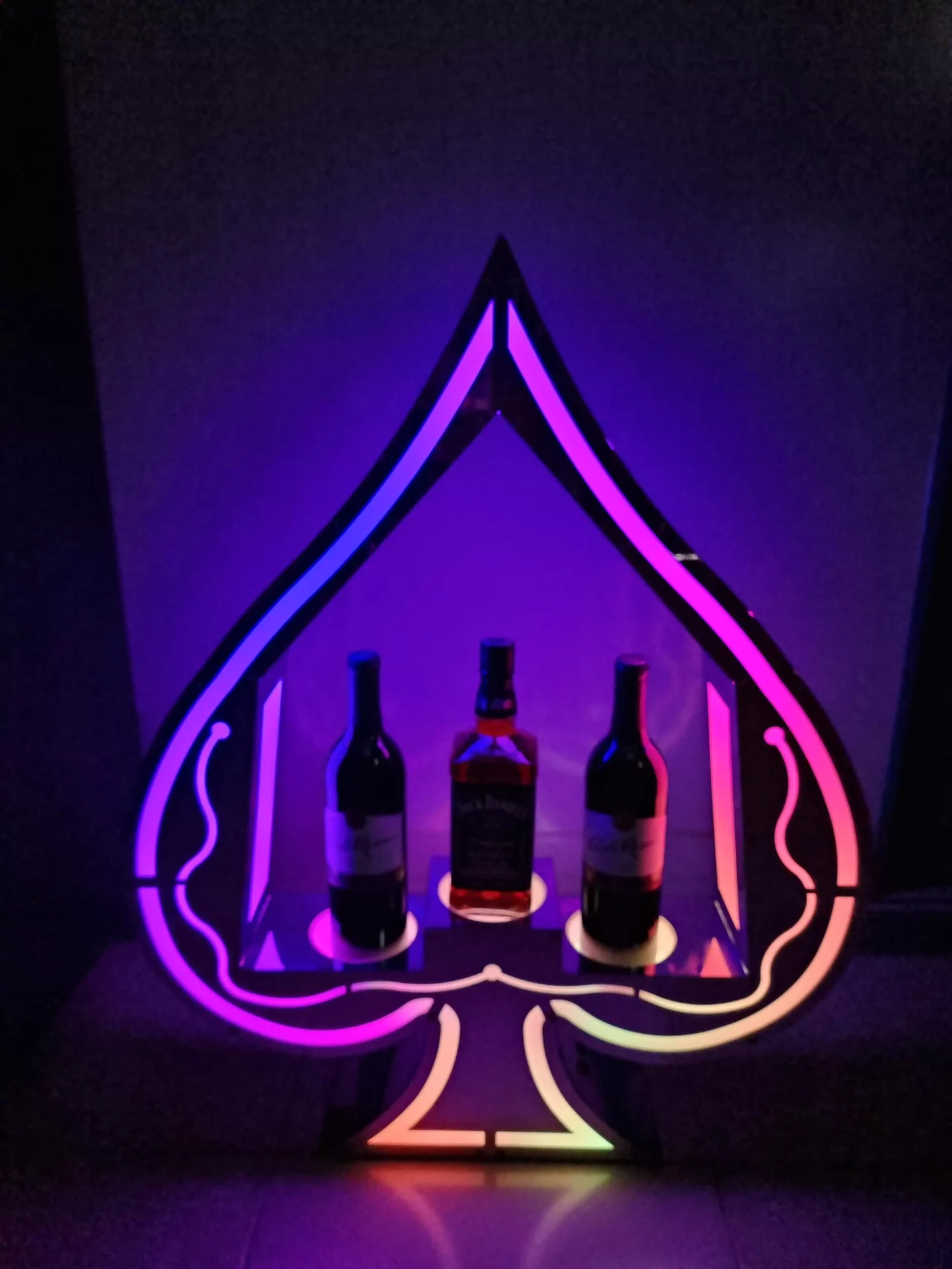 Make a bold statement with our Spade Wine Carrier, designed to impress with its unique spade shape and striking neon light outline. This eye-catching carrier holds up to three wine bottles, making it perfect for parties, events, or as a standout gift. The neon lights create a vibrant, glowing effect that enhances the carrier’s modern design, ensuring your wine presentation is as stylish as it is functional. Whether you’re hosting a gathering or looking for a memorable way to transport your favorite bottles, the Spade Wine Carrier is the perfect blend of creativity and practicality.